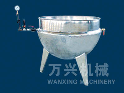 帶攪拌裝置鍋體:頂部中心攪拌,減速機(jī)輸出軸與攪拌槳軸采用活套連接,方便拆裝與清洗。